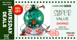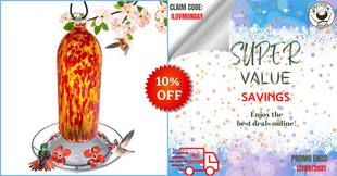 LIMITED TIME ONLY! Save 10% Off Discount on FIERY BELL TOWER HUMMINGBIRD FEEDER plus FREE SHIPPING! Enter code: ILUVMONDAY on checkout.