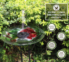 Featured Product of the Week - Red Ruby Flower Hand Painted Glass Bird Bath