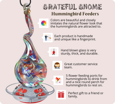 Are you searching for a perfect gift? This vibrantly colored, sturdy, thick, and durable hand-blown glass hummingbird feeder would make an ideal gift for a friend or family!