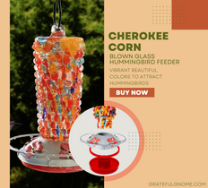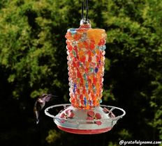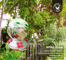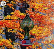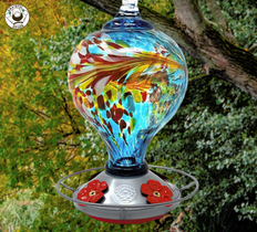 Attract more hummingbirds to your yard with this beautiful and unique blown glass hummingbird feeder and enjoy watching them as they visit for a sip.