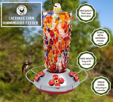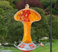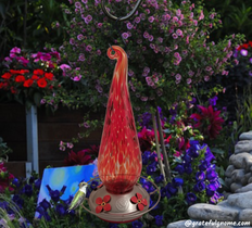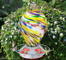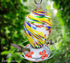 Attractively colored hand blown glass hummingbird feeder that hummingbirds will surely love!