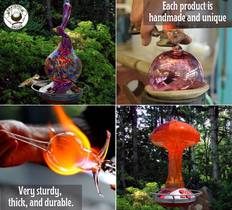 Liven up your yard with a beautiful and unique hand blown glass hummingbird feeder and attract more hummingbirds.
