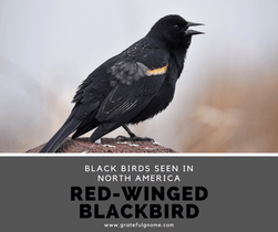 The Red-Winged Blackbird is a black songbird with distinctive red and yellow shoulder patches. It is one of the most abundant birds across North America.