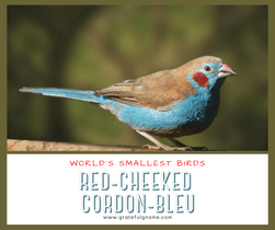 The Red-cheeked cordon-bleu also known as Red-cheeked Blue Waxbill is a family of small, blue estrildid finches indigenous to Africa.