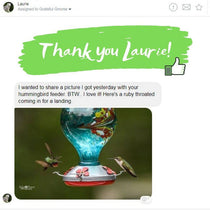 Hummers spotted at Grateful Gnome's Blown Glass Hummingbird Feeders!
