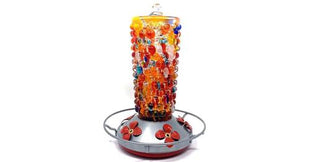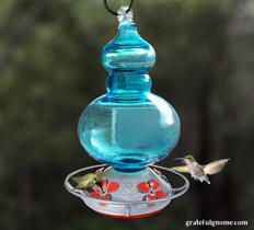 Beautiful and unique designs of hand blown glass hummingbird feeders to attract hummingbirds into your yard.