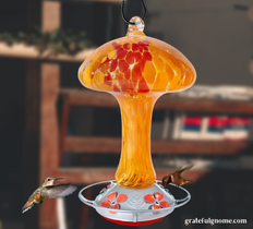 Red Speckled Mushroom - Hand Blown Glass Hummingbird Feeders