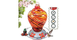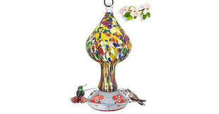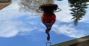 Observe and enjoy hummingbirds up close while providing them sugar-water from this beautiful and unique blown glass hummingbird feeder!