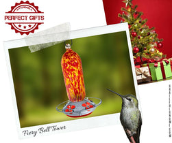 Fiery Bell Tower - Hand Blown Glass Hummingbird Feeder, beautiful and colorful design a perfect and ideal gift for any occasion!