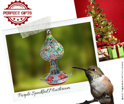 Purple Speckled Mushroom - Hand Blown Glass Hummingbird Feeder, beautiful and colorful design a perfect and ideal gift for any occasion!