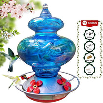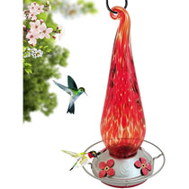 Unique and beautiful blown glass hummingbird feeder that will attract more hummingbirds into your yard.