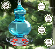 Attract more hummingbirds into your yard with beautiful and unique blown glass hummingbird feeder and enjoy watching them up close and personal!