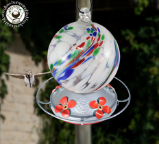 White Globe with Color Swirl Hummingbird Feeder