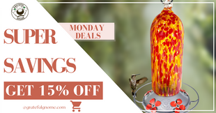 Enjoy watching hummingbirds up close with this Grateful Gnome Hummingbird Feeder!