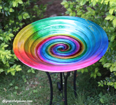 Featured Product - Rainbow Lollipop Hand Painted Glass Bird Bath