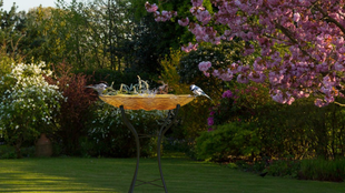 Featured Product - Purple Sunrise Bird Bath With Stand and Solar Fountain