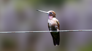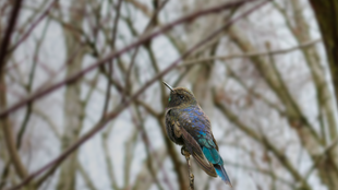 The Blue-Mantled Thornbill is a very dark hummingbird with a long tail and a short straight bill, native to the high-altitude forest and grassland regions of Ecuador, Bolivia and Peru.