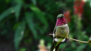 The Amethyst-Throated Hummingbird is a rather large hummingbird of humid evergreen and pine-oak forest in mountains. It is fairly common, but typically inconspicuous in shady understory and at edges, where feeds at all levels on flowers.