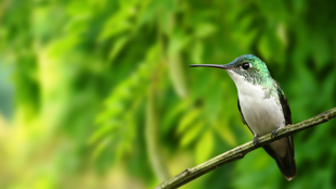 The Andean Emerald is medium-sized hummingbird found at forest edge, woodland, gardens and scrub in the Andes of Colombia, Ecuador and northern Peru.