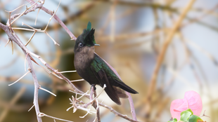 The Antillean Crested Hummingbird is a tiny hummingbird species with a small geographic range in the Caribbean, from eastern Puerto Rico through much of the Lesser Antilles.