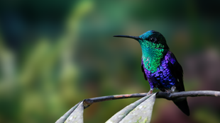 The Green-Crowned Woodnymph is a hummingbird found in humid forest and tall second growth from eastern Panama, south through western Colombia (incl. Cauca Valley) and Ecuador, to far north-western Peru.