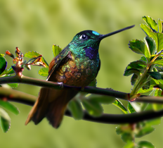 The Emerald-Bellied Puffleg is a small glittering green hummingbird found in Colombia, Ecuador, and Peru.