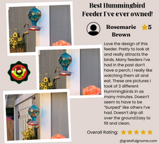 Liven up your backyard today with a Grateful Gnome Glass Hummingbird Feeder!