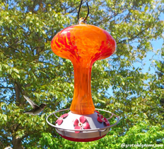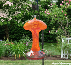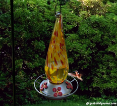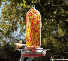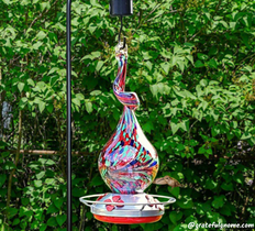 Attract more hummingbirds to your yard with this beautiful blown glass hummingbird feeder. Enjoy watching them up close and personal.