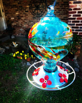 Colorful Hand Blown Glass Hummingbird Feeder by Grateful Gnome.#hummingbirdfeeder