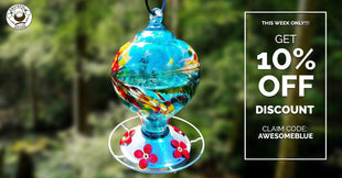 Keep your feeders up for migrating hummingbirds and help them boost their energy, with this Beautiful and Colorful Blown Glass Hummingbird Feeder!