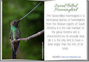 The Sword-Billed Hummingbird is a neotropical species of hummingbird from the Andean regions of South America. It has the longest bill in relation to its body size of any bird in the world.