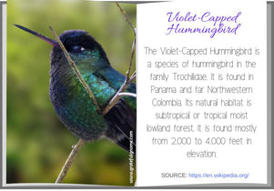 The Violet-capped Hummingbird, a medium-sized hummingbird that is found in Panama and far northwestern Colombia.