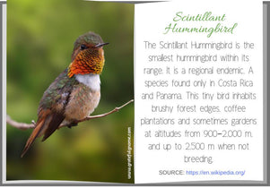 The Scintillant Hummingbird is the smallest hummingbird within its range. It is only found in Costa Rica and Panama.