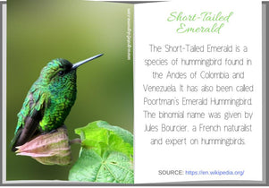 The Short-Tailed Emerald is a short-tailed hummingbird species found in the Andes of Colombia and Venezuela.