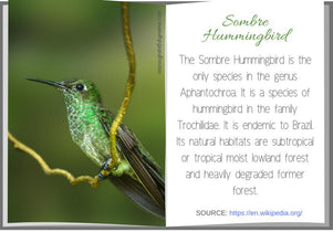 The Sombre Hummingbird is a large and dull hummingbird that is endemic to Brazil.