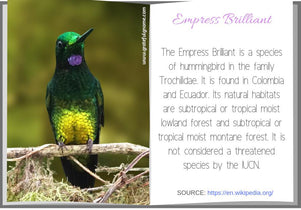 The Empress Brilliant, also known as the Empress Eugenie's Hummingbird is a South American hummingbird.