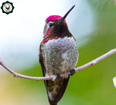 Anna's Hummingbird is found on the West Coast of North America, from British Columbia to Baja California. Males have a bright pink-red throat and crown, while females have a green back and pale throat.