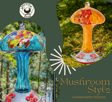 Beautiful mushroom style hummingbird feeders, perfect gift ideas this coming holiday season.