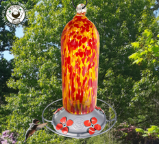 Beautiful blown glass hummingbird feeder to attract more hummingbirds into your yard.