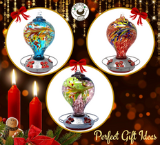 Are you searching for a perfect gift? This vibrantly colored, sturdy, thick, and durable hand-blown glass hummingbird feeder would make an ideal gift for a friend or family!