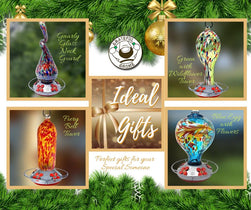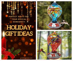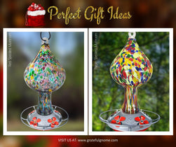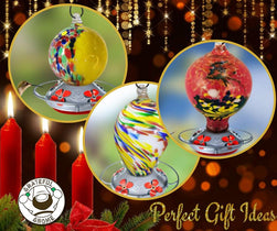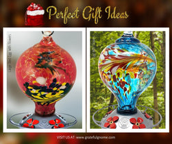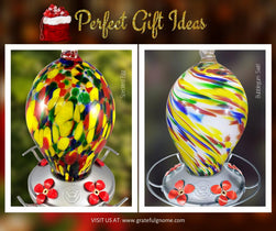 Beautiful and colorful Blown Glass Hummingbird Feeders, perfect gifts this coming holiday!!!