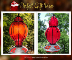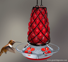 Grateful Gnome Red SpiderBird Lantern Hand Blown Glass Hummingbird Feeder.