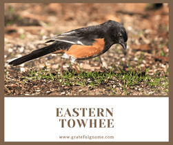 The Eastern Towhee is a fairly large, bulky, long-tailed, strong-billed, finch-like bird that breeds in brushy areas across eastern North America.