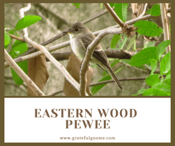 The Eastern Wood Pewee is a medium-sized flycatcher with long wings and tail. It is drab grayish-brown and can be distinguished most easily by their calls.
