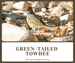 The Green-tailed Towhee is the smallest towhee, but is still one of the larger members of the American sparrow family Passerillidae. It is a grayish bird with olive-yellow wings, back and tail.