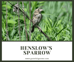The Henslow's Sparrow is a large-headed and thick-billed sparrow that can be distinguished from other sparrows by its distinctive color combination of olive-green nape, rufous wings, and crisp black streaks below.