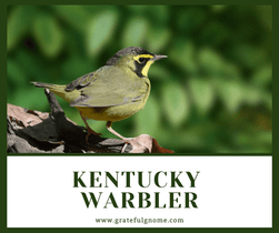 The Kentucky Warbler is a small species of New World warbler. It is a sluggish and heavy warbler with a unique appearance, it is mostly olive-green in color on back and nape, and a brilliant yellow below from its throat to its belly.