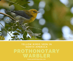 The Prothonotary Warbler, a large, heavy-bodied warbler with a big head and bill, with the males having gorgeous yellow head and underparts with greenish back and blue-gray wings.
